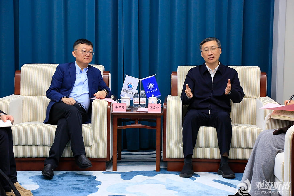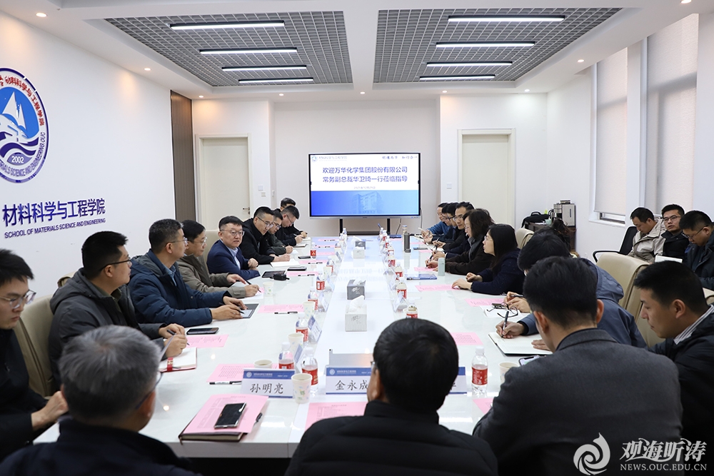 观海听涛讯 12月29日,万华化学集团股份有限公司(以下简称万华)常务副总裁华卫琦一行到中国海洋大学调研交流,校长张峻峰陪同调研。
